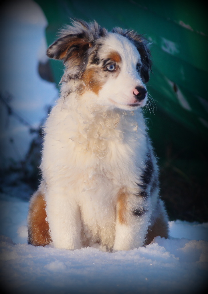 Farbe: blue merle Augenfarbe: rechts / blau links / blau